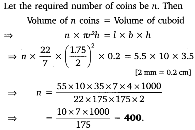 How many silver coins, 1.75 cm in diameter and of thickness 2 mm, must be melted to form a cuboid of dimensions 5.5 cm x 10 cm x 3.5 cm ?