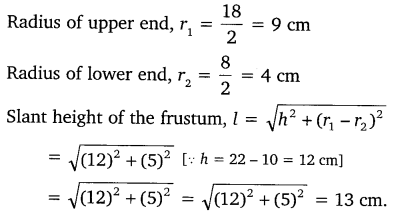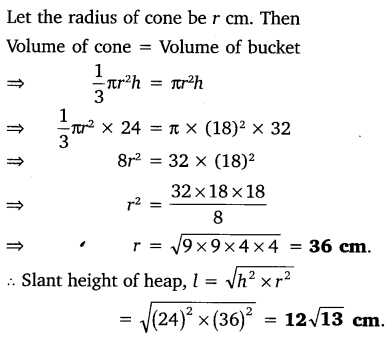 A cylindrical bucket, 32 cm high and with radius of base 18 cm, is filled with sand. This bucket is emptied on the ground and a conical heap of sand is formed. If the height of the conical heap is 24 cm, find the radius and slant height of the heap.