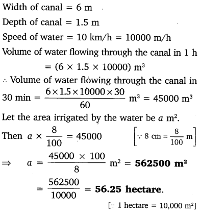Water in a canal, 6 m wide and 1.5 m deep, is flowing with a speed of 10 km/h. How much area will it irrigate in 30 minutes, if 8 cm of standing water is needed?