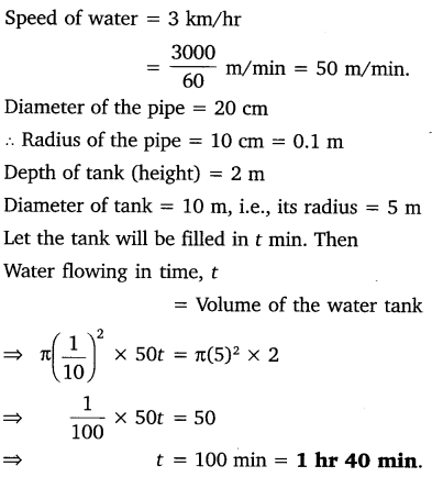 A farmer connects a pipe of internal diameter 20 cm from a canal into a cylindrical tank in his Held, which is 10 m in diameter and 2 m deep. If water flows through the pipe at the rate of 3 km/h, in how much time will the tank be filled ?