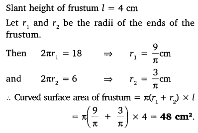 The slant height of a frustum of a cone is 4 cm and the perimeters (circumference) of its circular ends are 18 cm and 6 cm. Find the curved surface area of the frustum.
