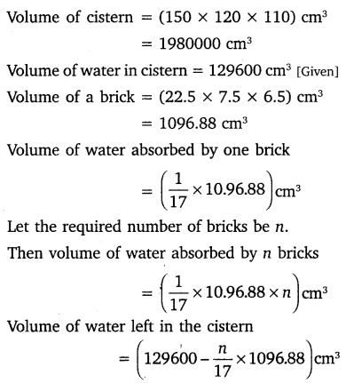 A cistern, internally measuring 150 cm x 120 cm x 110 cm, has 129600 cm of water in it. Porous bricks are placed in the water until the cistern is full to the brim. Each brick absorbs one-seventeenth of its own volume of water. How many bricks can be put in without overflowing the water, each brick being 22.5 cm x 7.5 cm x 6.5 cm?