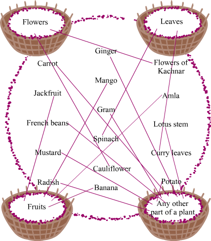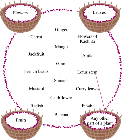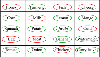 The names of some food items are given below. Add some more names to the list. Draw a green