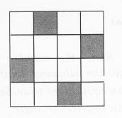 Copy the figure given here. Take any one diagonal as a line of symmetry and shade a few more squares to make the figure symmetric about a diagonal. Is there more than one way to do that? Will the figure be symmetric about both the diagonals?