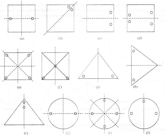 Copy the figures with punched holes and find the axes of symmetry for the following :