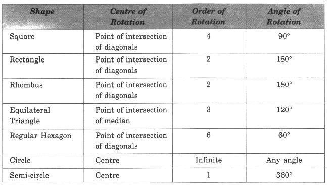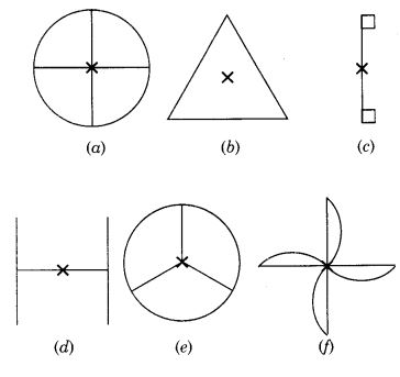 Mark a point P as shown in figure (i). We see that in a full turn, there are four positions (on rotation through the angles 90°, 180°, 270°, and 360°) when the figure looks exactly the same. Because of this, we say that it has rotational symmetry of order 4.