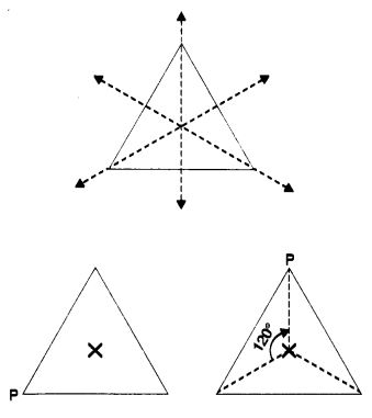 Mark a point P as shown in figure (i). We see that in a full turn, there are three positions (on rotation through the angles 120°, 240°, and 360°) when the figure looks exactly the same. Because of this, it has rotational symmetry of order 3.