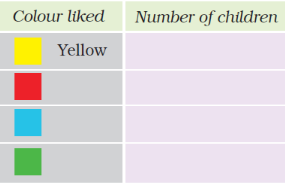 Ask your friends about the colour they like most. How many children like yellow? Write the number in the table. Fill the table for other colours.