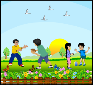 | डयन्ते | सूर्यः | चित्रपतङ्गाः | कूजन्ति | बालाः |