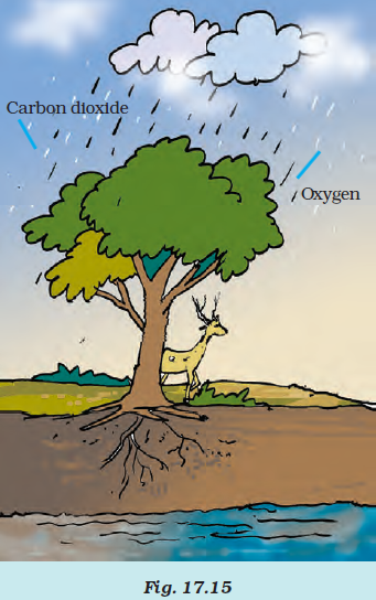 Plants in the forests consume carbon dioxide and release oxygen by photosynthesis process. This helps in balancing oxygen and carbon dioxide in the atmosphere.