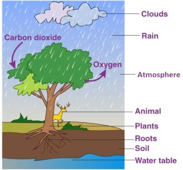 4. Explain the role of forest in maintaining the balance between oxygen and carbon dioxide in the atmosphere.