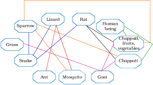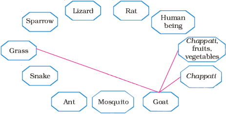 Who eats what ? Match by drawing lines of different colours. One example is shown.