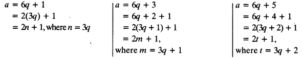∴ The numbers of the form 6q + 1, 6q + 3, 6q + 5 are odd.
