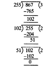 Since the remainder 51 ≠ 0, so again we apply Euclid’s division algorithm to 102 and 51, to get