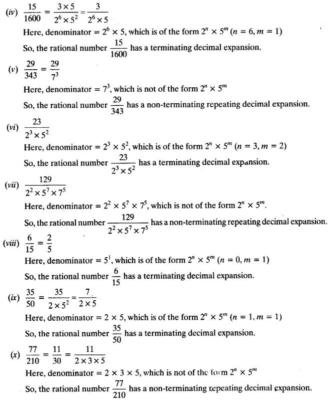 In Question 1, (i), (ii), (iv), (vi), (viii) and (ix) are having terminating decimal expansion.