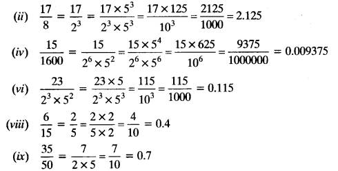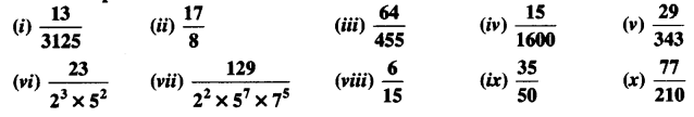 Write down the decimal expansions of those rational numbers in Question 1 above which have terminating decimal expansions.