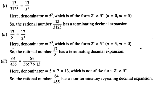 Without actually performing the long division, state whether the following rational numbers will have a terminating decimal expansion or a non-terminating repeating decimal expansion: