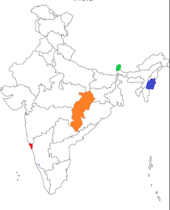 1. Locate the following States on a blank outline political map of India: Manipur, Sikkim, Chhattisgarh and Goa.