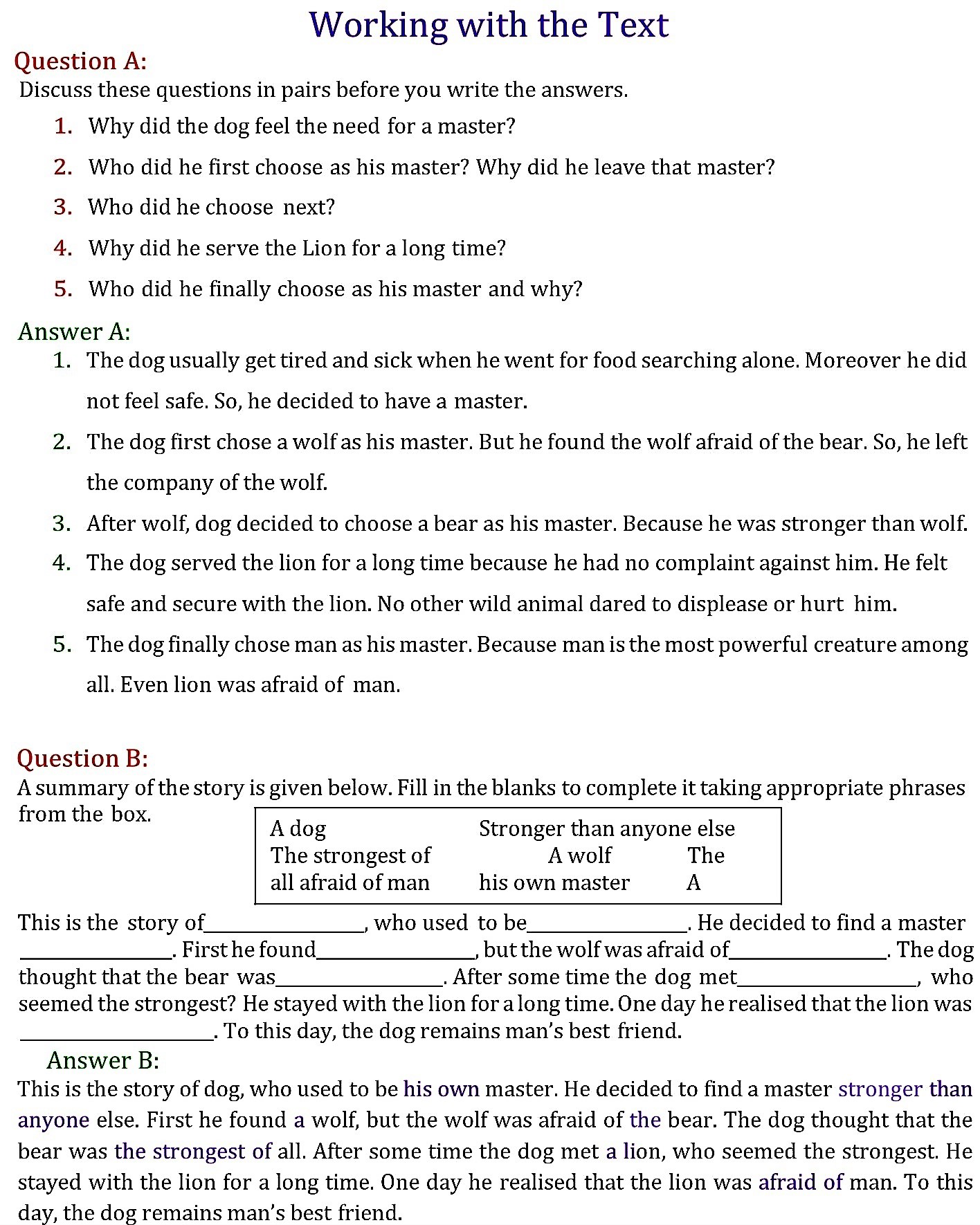 NCERT Solutions for class 6 English Honeysuckle chapter 2 – How the Dog Found Himself a New Master! by Not Known