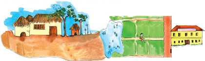 How Far is Your Home from School? Momun comes to school from very far. He first walks about 400 metres to the pond. With slippers in his hands, he then walks 150 metres through the pond. Next he runs across the 350 metres wide green field. Then he carefully crosses the 40 metres wide road to reach his school.