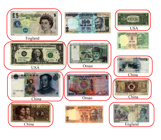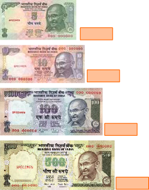 Look at these notes. Do they all belong to India? Put a circle around notes that are not Indian. Find out which country do they belong to.