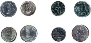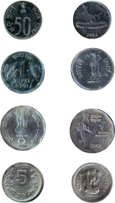 The coins that I can recognise are that of rupees 1, 2 and 5 as well as that of 50 paise.