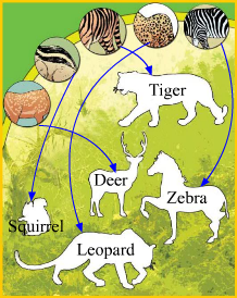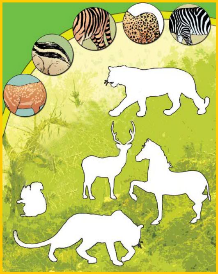 Match the animals shown here with the pictures of their skin. Make the correct pattern of the skin on the picture of each animal.