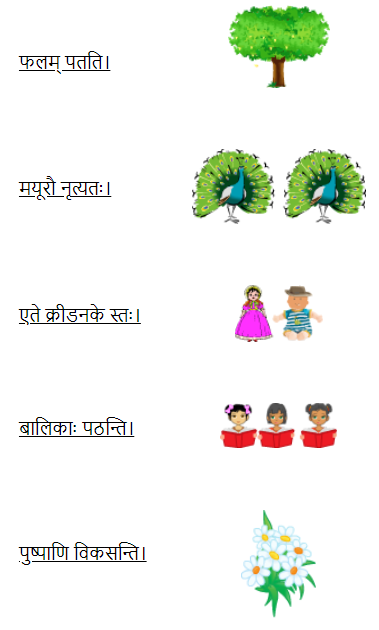 | (ङ) नारिकेलं पतति। | (द्विवचने) | – | .............................................. |