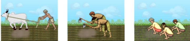 (ग) एते कृषका: धान्यम् रोपयन्ति।