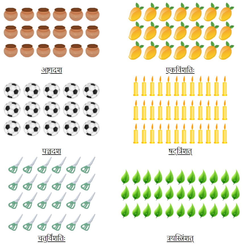 | षड् | त्रिंशत् | एकत्रिंशत् | द्वौ | द्वादश | अष्टाविंशतिः |