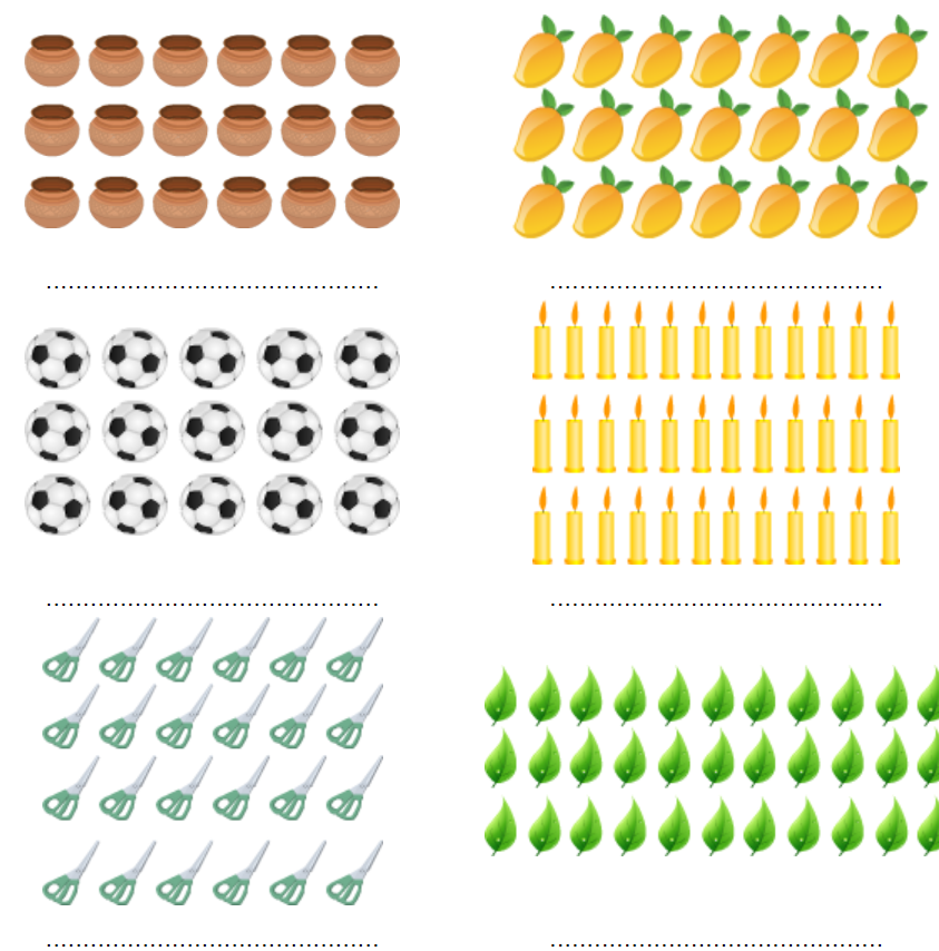 चित्राणि गणयित्वा तदधः संख्यावाचकशब्दं लिखत-