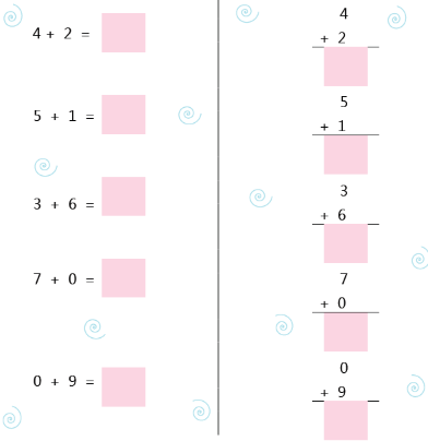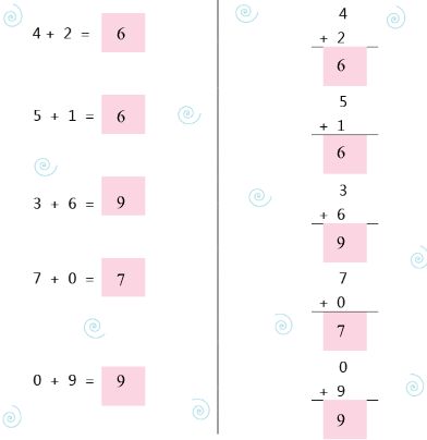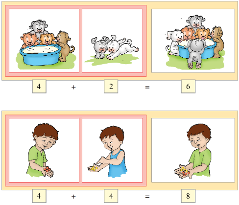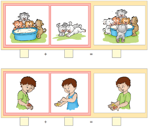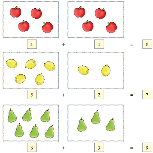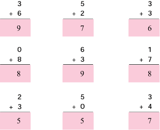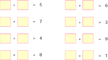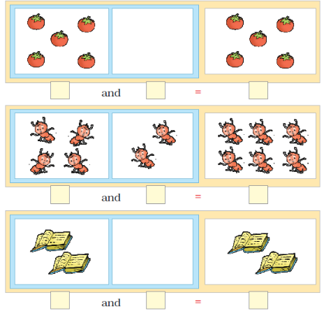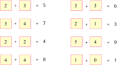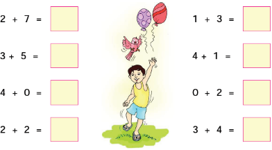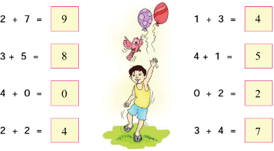 Disclaimer: The purpose of this section is to make students understand addition of numbers. The answer may vary from student to student. It is highly recommended that the students prepare the answers on their own. Some samples of the missing numerals have been provided for reference.