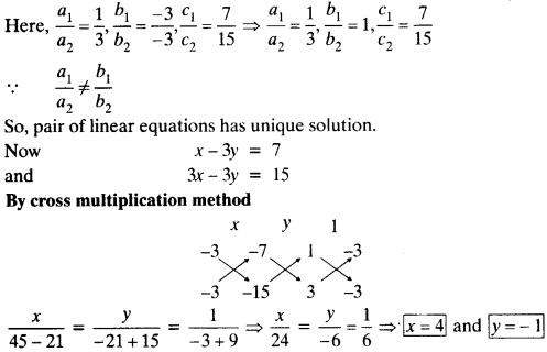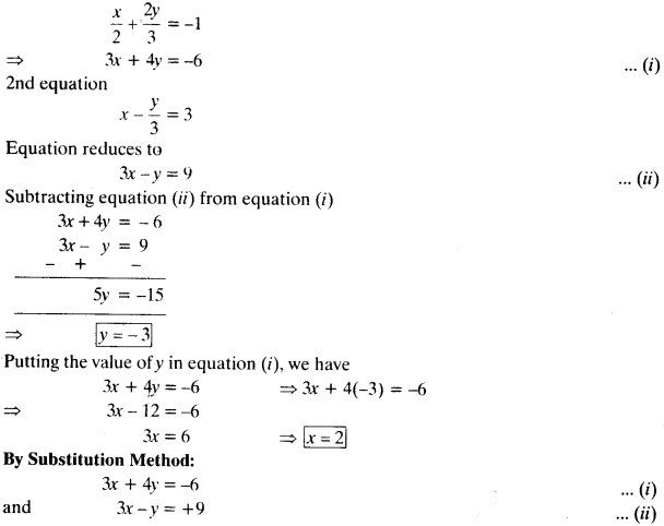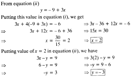 Solve 2x + 3y = 11 and 2x – 4y = – 24 and hence find the value of ‘m’ for which y = mx + 3.