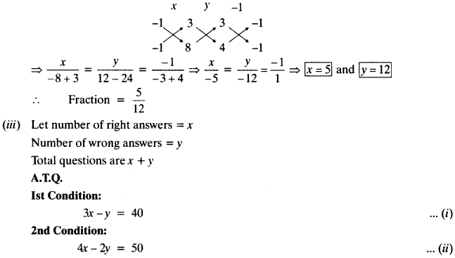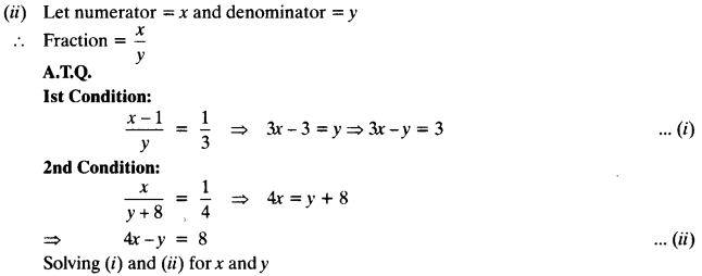 Form the pair of linear equations for the following problems and find their solution by substitution method.
