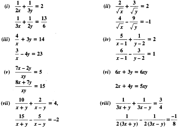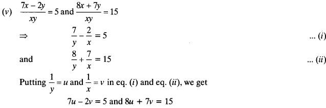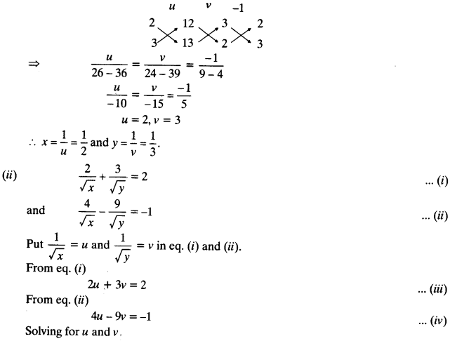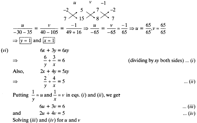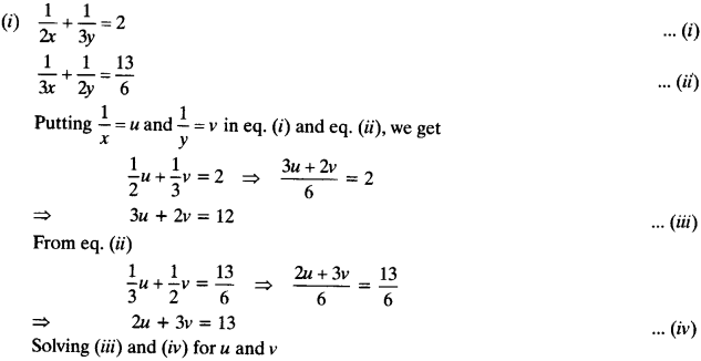 (iv) 0.2x + 0.3y = 1.3, 0.4x + 0.5y = 2.3