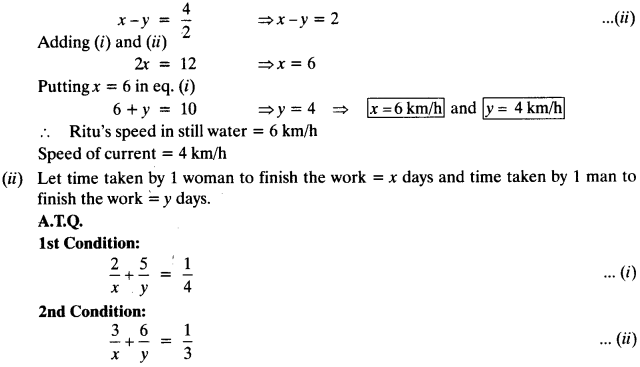 Multiplying (ii) by 4 and adding the result to equation (i), we get: