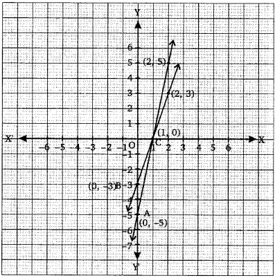 The vertices of ΔABC formed by these lines and the y-axis are A(0, -5), B(0, -3) and C(1, 0).