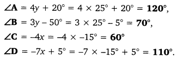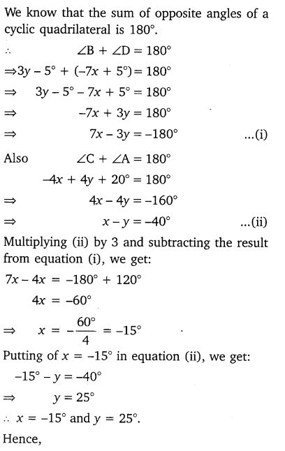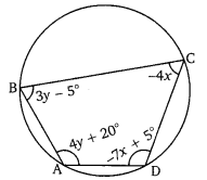 ABCD is a cyclic quadrilateral (see figure). Find the angles of the cyclic quadrilateral.