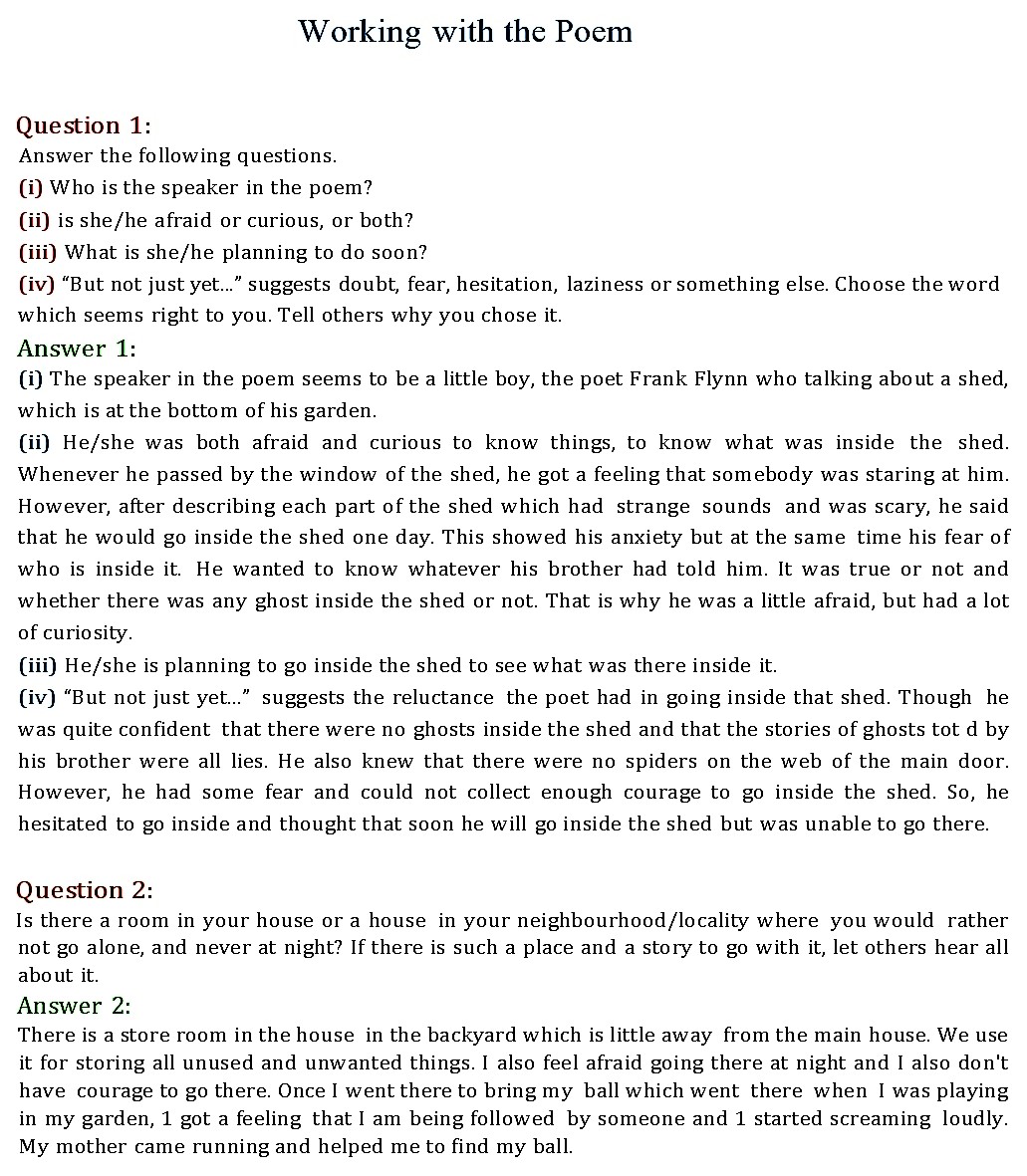 NCERT Solutions for class 7 English Honeycomb Poetry chapter 3 – The Shed by FRANK FLYNN