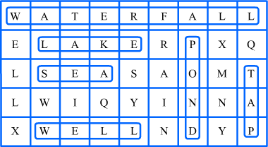 Given in the grid are some places where water is found. Find seven of them and put a