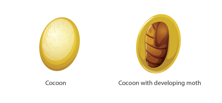 6. Make sketches of the two stages in the life history of the silk moth which are directly related to the production of silk.