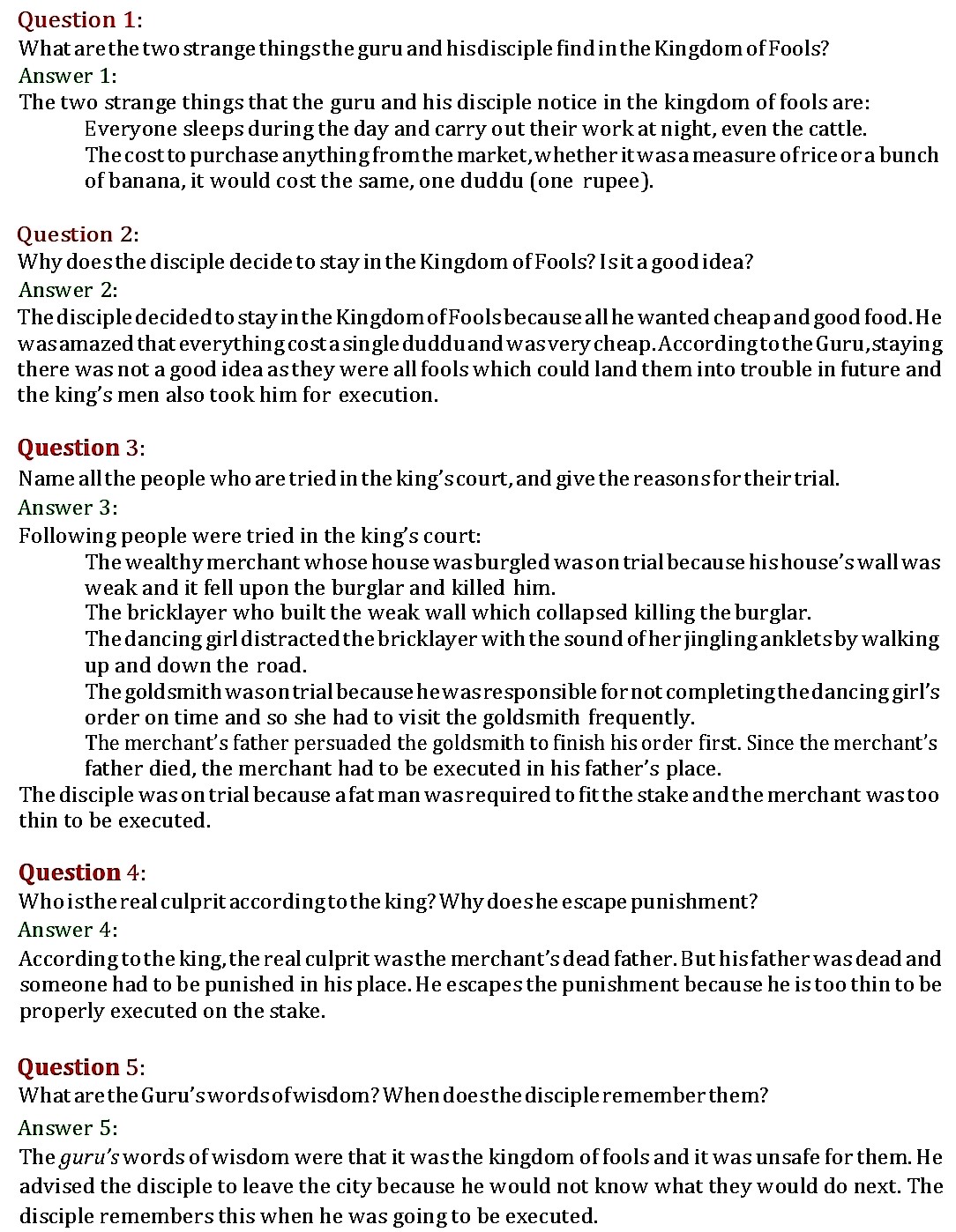 NCERT Solutions for class 9 English Supplementary Moments chapter 4 – In the Kingdom of Fools by Kannada Folktale