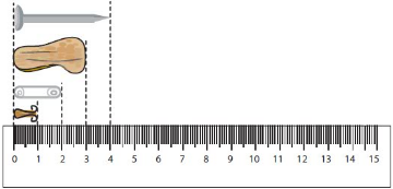 Is it easier to start measuring from the 0 mark? Look at the things drawn near the scale and find out their lengths.