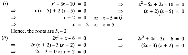 ⇒ x2 + x – 2x – 2 = x2 – 3x + x + 3 = 0