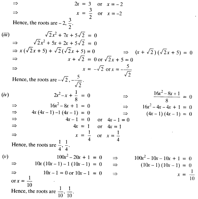 Find the roots of the quadratic equations by applying the quadratic formula.