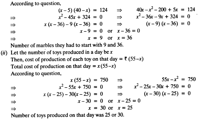 (ii) A cottage industry produces a certain number of toys in a day. The cost of production of each toy (in rupees) was found to be 55 minus the number of toys produced in a day. On a particular day, the total cost of production was ₹750. We would like to find out the number of toys produced on that day.