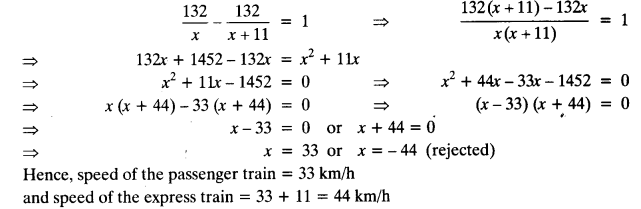 An express train takes 1 hour less than a passenger train to travel 132 km between Mysore and Bengaluru (without taking into consideration the time they stop at intermediate stations). If the average speed of the express train is 11 km/h more than that of the passenger train, find the average speed of the two trains.