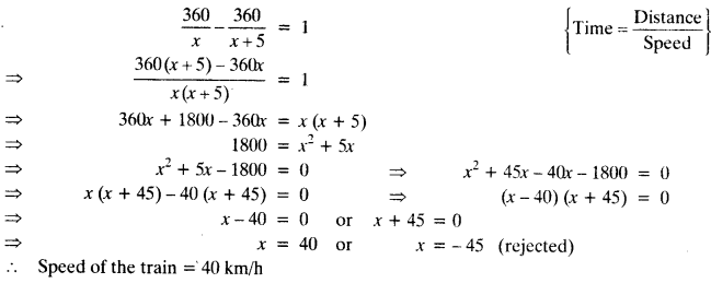 A train travels 360 km at a uniform speed. If the speed had been 5 km/h more, it would have taken 1 hour less for the same journey. Find the speed of the train.