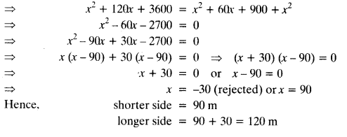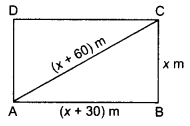 Then, longer side = (x + 30) m and diagonal = (x + 60) m