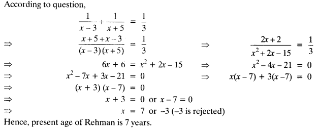 The sum of the reciprocals of Rehman’s ages, (in years) 3 years ago and 5 years from now is